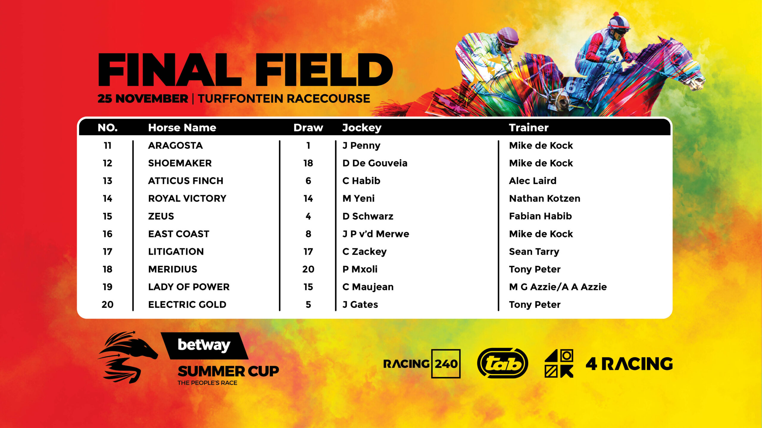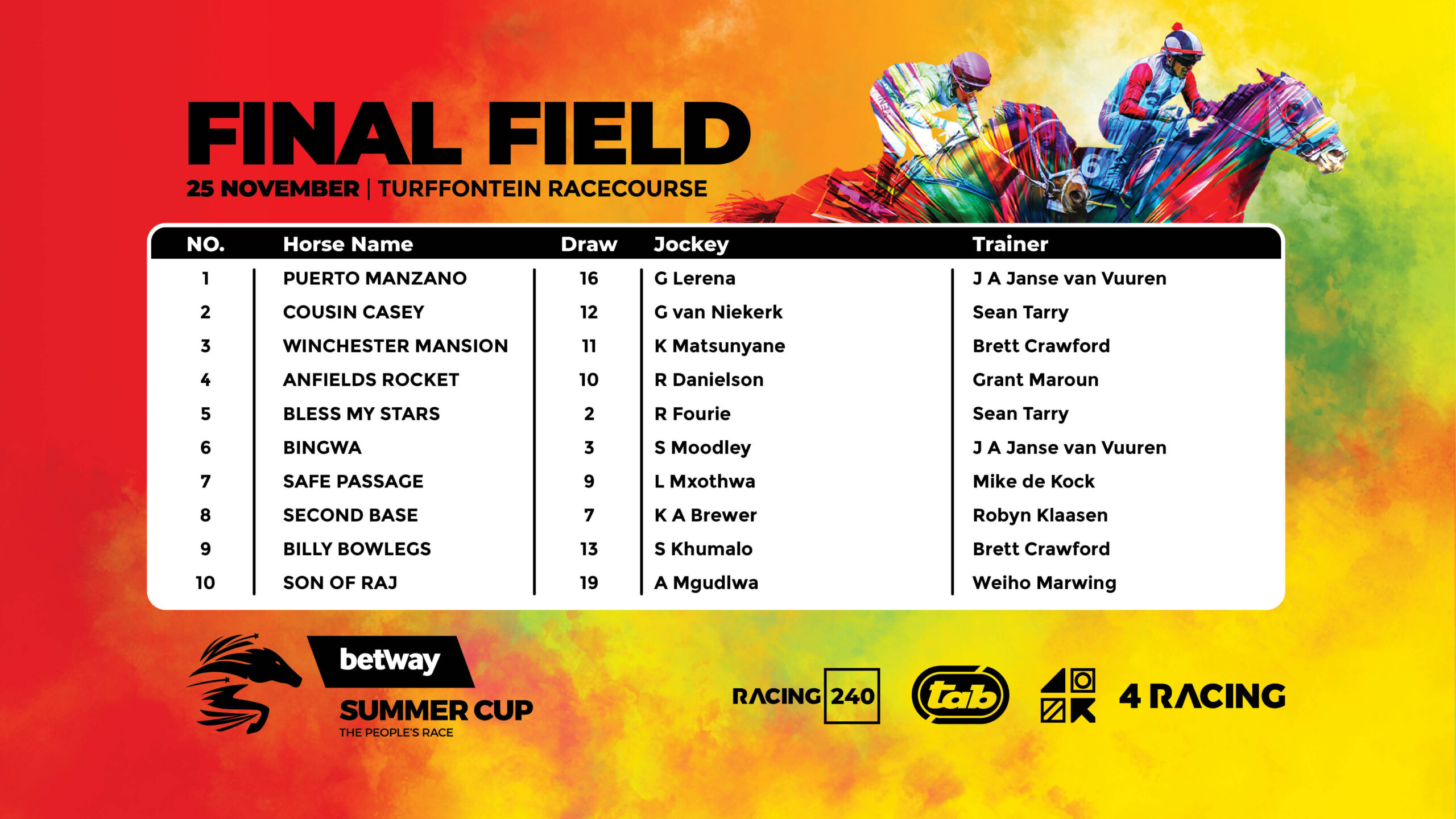2023 R5 million Betway Summer Cup Final Field & Draws
