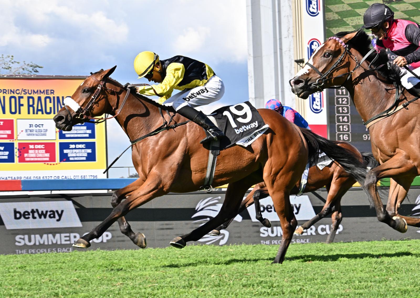 Above: Mocha Blend stays on to win the Betway Summer Cup from a flying Olivia’s Way (image: JC Photographics)