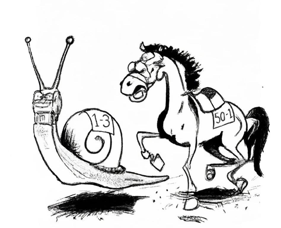 According to certain sources on Google, the slowest horse in recorded history was ‘Buddy’, a chestnut gelding who raced in the early 1920s in England. He was sired by Galtee More, one of the champion stallions of the time, and trained by the renowned Tom Lawlor. Despite his impressive lineage, Buddy was known for his laid-back attitude and lack of speed on the track. It was joked that he was so slow that he once stopped in mid-race to take a nap. “I’ve seen garden snails with a more aggressive racing strategy,” Lawlor reportedly said.