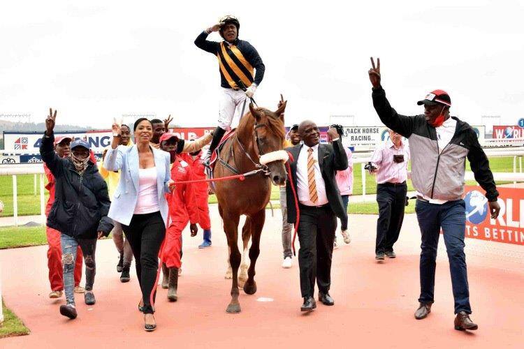Above: Koos Nkale and Jessica Motaung in the winner’s enclosure with MK’s Pride