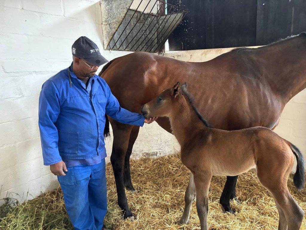 Royal Victory (Pathfork) and Alesian Chief (Vercingetorix) were born at the Nuy farm. Royal Victory’s dam, Kailani, just this week foaled down with a colt by Danon Platina. “He’s all black and will turn grey like his sire.” Marianne also delivered a foal by Rafeef out of All In The Mind, by Var. He is a half-brother to Alesian Chief, the lightning fast, but ill-fated chestnut who won the Merchants, the Golden Loom Handicap and the Golden Horse Sprint for trainer Corrie Lensley. “He is a smashing foal, very correct and classy,” she said.