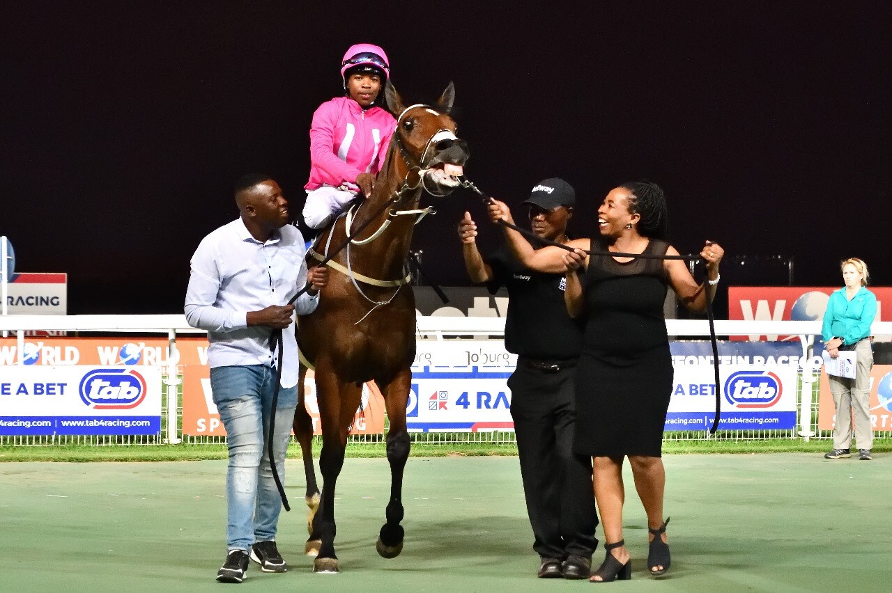 There are some well-known names in this group of ladies and they include former trainer Dorrie Sham, the TBA’s Heather Morkel, Jessica Slack of Mauritzfontein Stud and Karen Render of Bush Hill Stud. Also involved is 2022 ‘Queens With A Purpose’ finalist, Agnes Mahonoe, who runs the groom’s hostel at Randjesfontein and Turffontein’s mobile kitchen. Agnes has been on course for all Calantha’s runs.