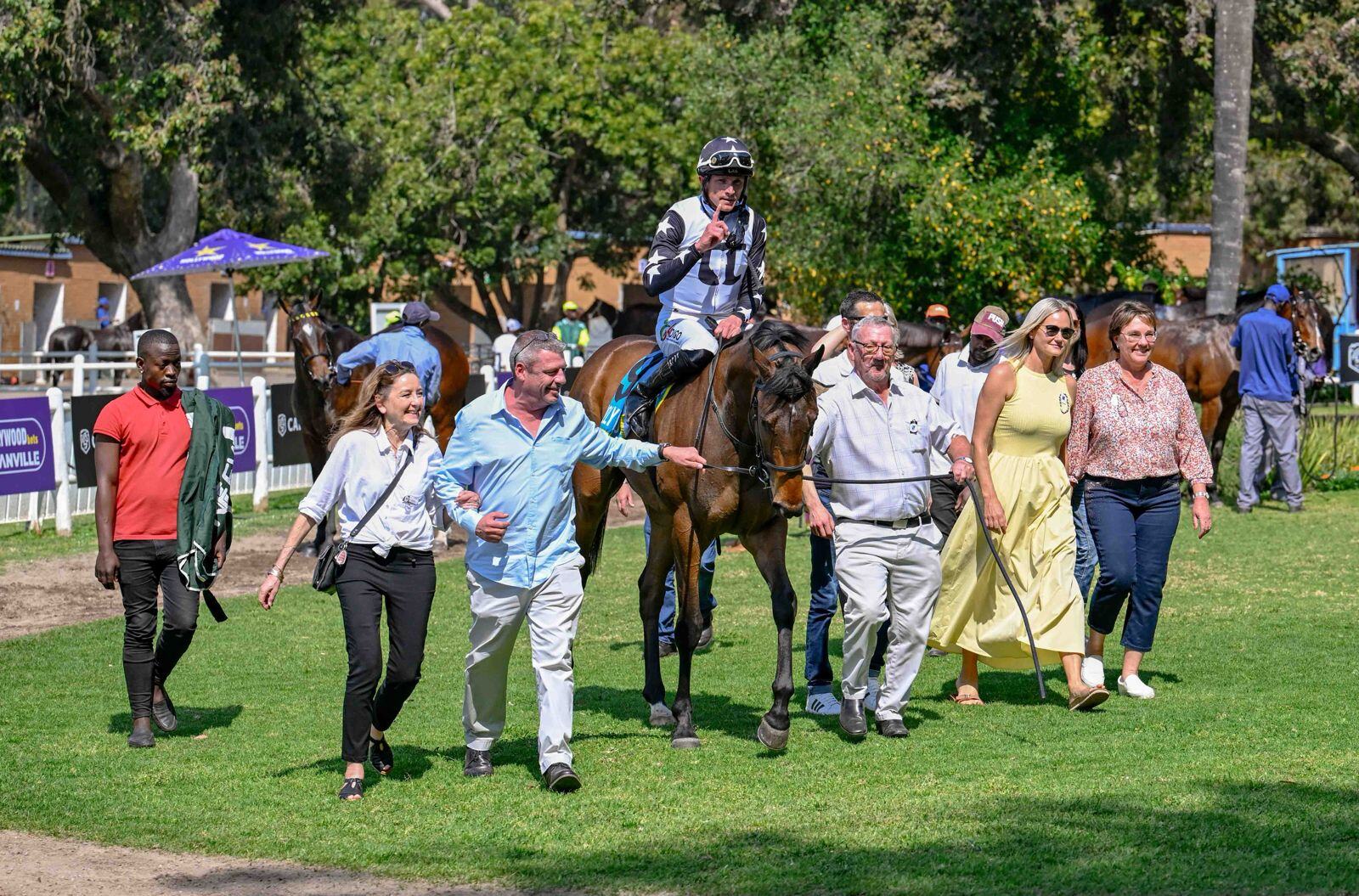 Another R50,000 cheapie, All Is Green (Captain Of All) finished third to Berry’s Boogie in a 1200m contest on Saturday, adding R12,500 to her earnings of R189,000 for Greg Ennion’s Genuine Ennion Syndicate. She’s also earned sales bonuses of R140,000, which puts her career earnings near R350,000 and represents a fabulous return from just seven starts. “We bought her at Cape Racing’s Winter Sale, nobody else was interested in her. We advertised the opportunity on social media and via a mailing list and found seven new owners for this Syndicate. Two have dropped off, but those who remained have become friends. We often race together and three members have re-invested in other runners,” said Ennion.