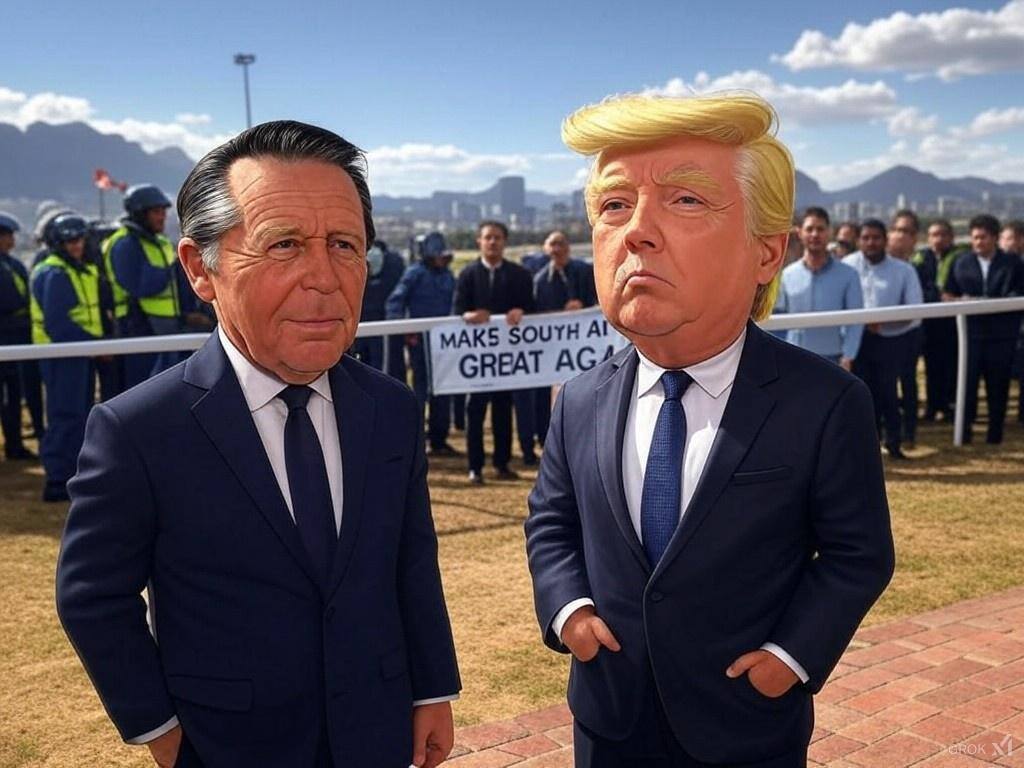 Cape Racing stages the “Make South Africa Great Again” race day. Gary Player hosts US President, Donald J Trump, and Elon Musk, in a private suite at Kenilworth. The Western Cape’s riot control unit is summoned for a group of protestors at the Wetton Road gate. The uproarious cabal is led by Cape Premier, Alan Winde, dressed in a rainbow-coloured tutu; trainer Peter Wrensch, unemployed comedian Trevor Noah and musician Tony Ridgway, who performs his chart-topping ditty, “The Orange Blues”.