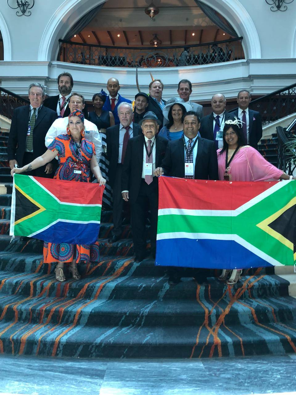 Above: Recent SA group on the staircase at Movenpick Hotel