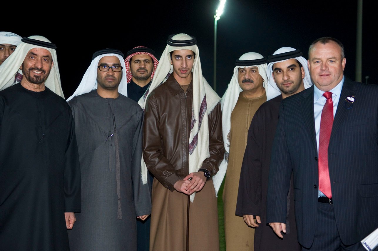 Above: Mike with Sheikh Mohgammed bin Khalifa Al Maktoum and his entourage In Dubai (image: Andrew Watkins)