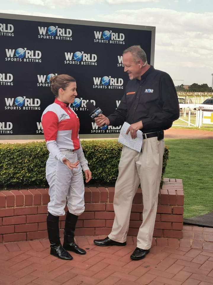 Above: The ‘Tower of Turffontein’ Lyall Cooper interviews Hayley Turner (image: JC Photos)