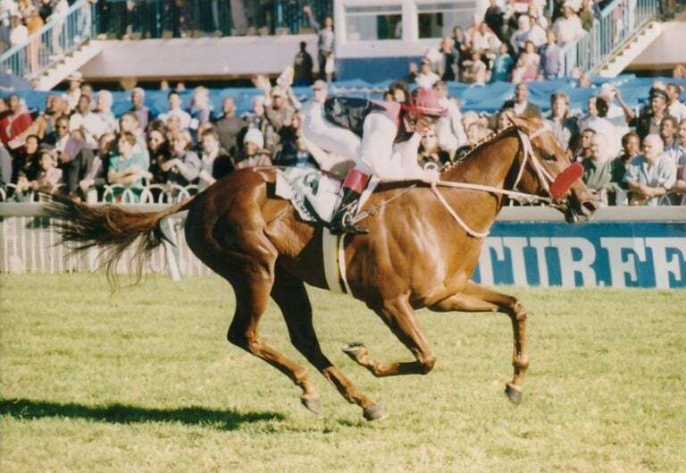 Harry’s Charm only returned to the track eight months later, in March 1996, and she was stronger and better than ever. In her comeback run in the hands of Piere Strydom, she galloped her rivals dizzy in the Grade 3 Henry Eatwell Memorial over 1000m at Newmarket, leaving quality sprinting fillies like Studio Star and Sydney’s Dream in her wake.